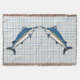 Not many fish are more incredibly beautiful than the blue marlin -- and not many fish are larger. The blue marlin is the largest of the Atlantic marlins and, seriously, one of the biggest fish in the world. As with some species, the female is often quite a bit larger than the male. Females can grow up to 14 feet long and can weigh more than 1,900 pounds, though the average runs more around 11 feet long and 300-ish pounds. A deep blue on top and silvery-white beneath, with a pronounced dorsal fin and a long, lethal, spear-shaped upper jaw (that some refer to as a bill), blue marlins are one of the most easily identifiable and recognizable fish in the world. Marlins are renown for their incredible stamina in a fight when they are hooked, which makes them a trophied favourite of big game fishermen. Though it can also be said of virtually any super big fish, I can't imagine there's much more thrilling to the avid angler than hooking one of these giants and seeing it break water in the fight. This design pays homage more to this majestic fish than the anglers that seek it. For this wonderful, throw blanket, two blue marlins face one another, leaping from a sea of colour-coordinated plaid, making this an excellent addition to your fishing lodge or beach house decor.