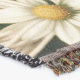 Luxurious cotton woven throw featuring intertwined white daisies on a diamond-shaped wicker frame with Victorian scroll border. Soft, cozy, and perfect for adding a touch of boho elegance to any living space. Symmetrical seamless pattern ensures versatile styling.