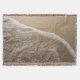 A Throw blanket with the image of a wave washing out on to the beach as viewed from a high vantage point.