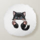 An adorable illustration of a fluffy black kitten peeking over an edge, with big expressive eyes and tiny pink paws, creating a cute and playful mood.