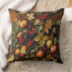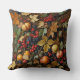 This throw pillow is covered with the image of autumn leaves, red and purple berries, apples, and twigs.