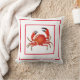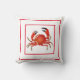 Throw pillow shown in red and white with a cute crab print design. Solid red on the backside of the pillow.