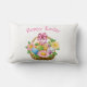 This throw pillow is shown in white with a cute festive Easter basket print.