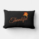 This throw pillow is shown in a black colour with a Thanksgiving Thankful text print.