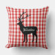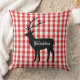 This throw pillow is shown in a cute red plaid Yellowstone Deer print design.