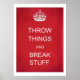 Funny satire of the famous WW2 British poster, Keep Calm and Carry On - the vintage historical British World War 2 propaganda poster in red and blue with crown logo. Its purpose was motivating the Allied War effort, patriotism and determination to win against the Axis Powers. But times have changed. Right now it's time to throw things and break stuff.