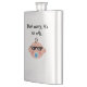 The product is a good size and came exactly as it was pictured. The lid is not attached to the flask, which could be dangerous on drunken nights... The print came out surprisingly well and looks very sharp. Would definitely recommend.