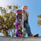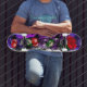 This unique skateboard deck has a cool, colourful graffiti look, with roses, cherries, clouds and lightning. Available in several different sizes and styles, this board is perfect for everyday skating, or even mounting on your wall as an eye-catching piece of art.