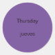 These day of the week stickers feature the word Thursday along with the English to Spanish translation, jueves. The background colour is purple, which can be customized. Thank you for shopping CherylsArt on Zazzle.