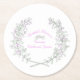 Two sprigs of thyme leaves and flowers forming a herb wreath circle floral bridal shower coasters. Edit these bridal shower coasters with your own honouring bride to be name. Unique sketched art design by Sarah Trett.