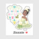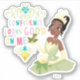 Tiana holding frog Prince Naveen, featuring text with colourful lettering that reads: "Confidence looking good on me".
