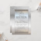 Silver glitter tiara on silver glitter bokeh ombre Sweet 16 birthday party invitation.