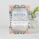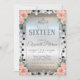 Silver glitter tiara and dots on silver glitter ombre with roses Sweet 16 birthday party invitation.