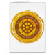 This Dharma Wheel design has yellow and orange circular grunge strokes with Om Mani Padme Hum in elegant surrounding text. In the inner brown circle is larger Om Mani Padme Hum text. In the centre with a backing of enlightened rays is a Dharma Wheel symbol, which represents Buddhas teachings. The eight spokes represent the Noble Eightfold Path of Buddhism. Om mani padme hum is a Tibetan Buddhism mantra believed to invoke the attention and blessings of Chenrezig, the embodiment of compassion. It is believed the teachings of the Buddha are contained in the mantra Om Mani Padme Hum.