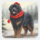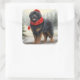Tibetan Mastiff Dog in Snow Christmas Square Sticker