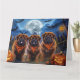 Unleash the spooky spirit with this eerie Halloween design featuring a pack of dogs under a dark, moonlit sky, surrounded by flying bats and glowing pumpkins. Perfect for those who love a touch of frightful fun with their furry friends!