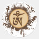 Tibetan Om symbol in brown and orange is the focus of this Om Mani Padma Hum design with the Om symbol in the centre of tan and orange circle with brown floral background! Bold yet understated Tibetan Buddhism Om gifts for yoga lovers and Buddhists!