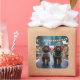 This festive design captures the joyful spirit of the holiday season, featuring an adorable dogs.Nestled in a winter wonderland, complete with a decorated Christmas tree, and beautifully wrapped presents. Snowflakes gently fall, adding a magical touch to the scene, while the vibrant colours of the holiday decorations create a warm and cheerful atmosphere.