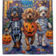Adorable Tibetan Spaniels dressed in playful Halloween costumes carry pumpkin buckets while trick-or-treating under the moonlit sky. This festive design highlights the breed’s silky coat, expressive eyes, and cheerful personality, perfectly capturing the spooky yet fun atmosphere of Halloween night. A delightful celebration for Tibetan Spaniel lovers, dog enthusiasts, and Halloween fans alike.