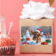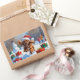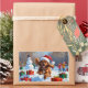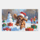 A cheerful Tibetan Spaniel runs playfully through the snowy winter scene, wearing a festive red Christmas hat. This charming design highlights the breed’s silky coat, expressive face, and lively spirit while capturing the warmth and joy of the holiday season. A heartwarming winter moment full of festive cheer.