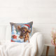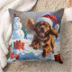 Tibetan Spaniel Running in Snow with Christmas Hat Throw Pillow