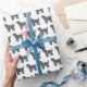 Tibetan Terrier Dog Silhouette Y&B Grid White Gift Wrapping Paper
