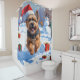 A lively Tibetan Terrier runs joyfully through the snowy winter scene, wearing a festive red Christmas hat. This charming design highlights the breed’s long flowing coat, playful personality, and affectionate nature while capturing the warmth and joy of the holiday season. A delightful winter moment full of festive cheer.