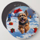 Tibetan Terrier Running in Snow with Christmas Hat 6 Inch Round Button