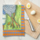 FUN LOVING TURKEY ENJOYING A GAME OF TIC TAC TOE. HOLIDAY KITCHEN TOWEL Blue/Orange Border * Customize.... Look For Matching Items Susan Brack Design
