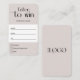 Carte de nom de tirage au sort d'entreprise minimaliste en beige et blanc avec un espace pour votre logo d'entreprise et les détails du tirage au sort. Ce jeton moderne 'participez pour gagner' présente des polices tendance et une mise en page simple et est parfait pour votre prochain tirage au sort professionnel ou privé. Créez des cartes nominatives personnalisées pour votre prochain événement, qu'il s'agisse d'un tirage au sort professionnel ou d'un jeu de baby shower, cette carte d'invitation de bon de tirage au sort peut convenir à n'importe quel usage !