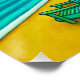 A painting print by Lisa Lorenz of a vibrant, blissful tropical scene of a colourful cozy beach house along a turquoise seashore beach.
