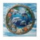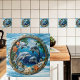 Celebrate the playful beauty of the sea with Tide Treasures, a digitally enhanced AI image brought to life on ceramic. This design features four graceful dolphins swimming in harmony through an intricately adorned circular frame of coral, starfish, seashells, and even a whimsical sandcastle. In the backdrop, soft palm silhouettes sway beneath a vibrant sky, evoking a dreamy coastal escape. Tide Treasures transforms walls, backsplashes, and accent pieces into oceanic oases, fusing vivid marine storytelling with modern digital artistry