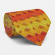 Shells in crochet worked in shades of orange and yellow. Stripes are Horizontal on the length of the tie.