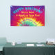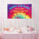 Tie Dye Banner Personalized for Birthday Banner or ANY Occasion. Type in the birthday girls Name, Age, Birthday Message or Delete. Click "Customize further" to CHANGE "Happy Birthday" Banner Message to Your Text. CALL Designer Linda: 239-949-9090 to make Design or Product CHANGES for you at no extra cost.
