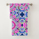 Serviette sertie dans une teinture numérique mandala motif dans les tons bleu denim et rose rose