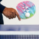 Pink and teal blue pastel tie dye fabric background on a custom ping pong paddle personalized with your name and monogram initial letter in a fun and girly modern script font for an updated dip die hippy look.