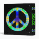 Tie Dyed Peace Sign Binder features a peace sign cut out of tie dye and the word peace.