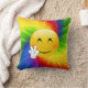 What a great throw pillow for anyone who loves peace signs, emojis and rainbow tie dye!