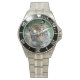 Has heft and feel of expensive stainless steel quartz watches. Good band with safety catch. I removed links, which is easy because engraved arrows show direction to push the linking pins. As always by this seller, the image (a railroad logo) is a perfect reproduction of my emailed image, and is precisely spaced and aligned.