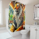 This shower curtain has a tiger design on it.