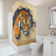 This shower curtain has an artsy tiger on it.