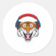 Tiger at Music with Headphone Classic Round Sticker