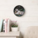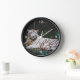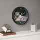 I received this as a birthday gift from my husband to replace a clock that had broken. It was perfect, pictures of my sweet family to see at every hour of the day. The size of the pictures looks nice for the size of the clock and I love looking at it! The only downside is there is no cover for the battery on the back, which makes me nervous having little kids running around the house, but an easy fix with some tape. The printing turned out clear, considering they were all cell phone pictures. Some of them look slightly grainy upon getting close up. But so nice overall!