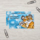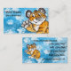 A waving tiger cub greets your new business contacts and clients with a smile! This cartoon, watercolor design features a blue catprint pattern. Customize the front and back with your company information.