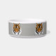 This is a heavy, durable bowl decorated with Tibbies of many colors, the perfect size for hungry/thirsty Tibs. The design is interesting and printing clear.