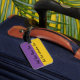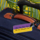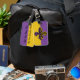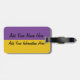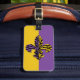 An original wild fleur de lis tiger print in purple and gold for Carleigh on a Luggage Tag with a leather strap. Change the design size and background colours, add text or move the design around to create a personalized tag to express your inner wild child and help you find your luggage while travelling.