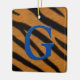 This ornament has a blue monogram over tiger stripes. Customize the back with your own message.