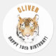 Tiger Head Watercolor Name Birthday Classic Round Sticker