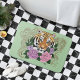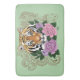Tiger portrait with pink and light purple flowers. Henna all around the tiger in a backdrop of green.