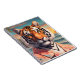Funny Tiger wearing a Hawaiian shirt on a beautiful beach.